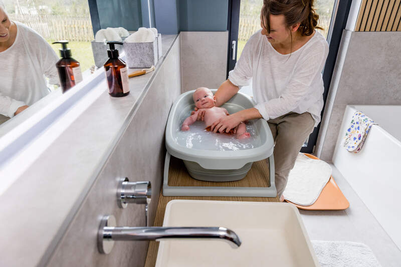 - Vous pouvez ajouter un transat pour apporter un confort optimal à votre nouveau-né lors du bain (vendu séparément).