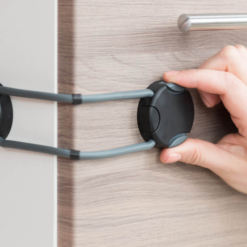 Vous souhaitez sécuriser vos tiroirs, armoires, portes d'électroménager ? Le bloqueur souple multi-usage adhésif d'Oskö est la solution !