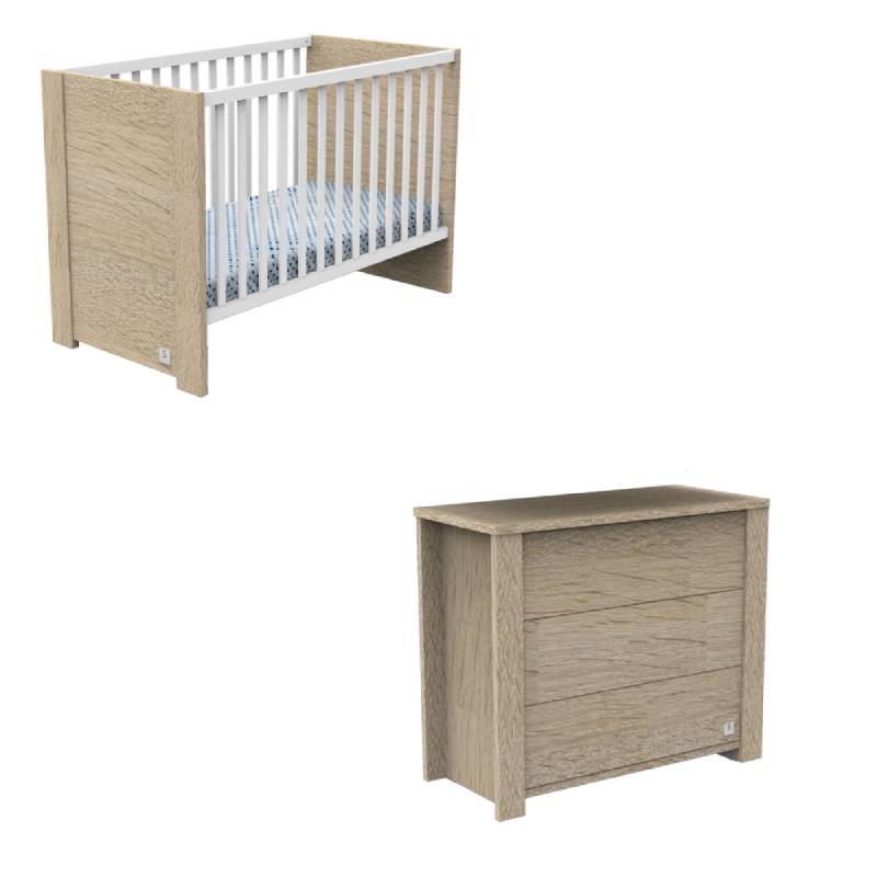 Chambre Antonin chêne : lit, commode + plan à langer