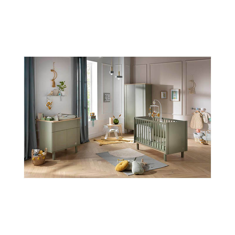 Chambre Eleonore Kaki : lit, commode, armoire + plan à langer