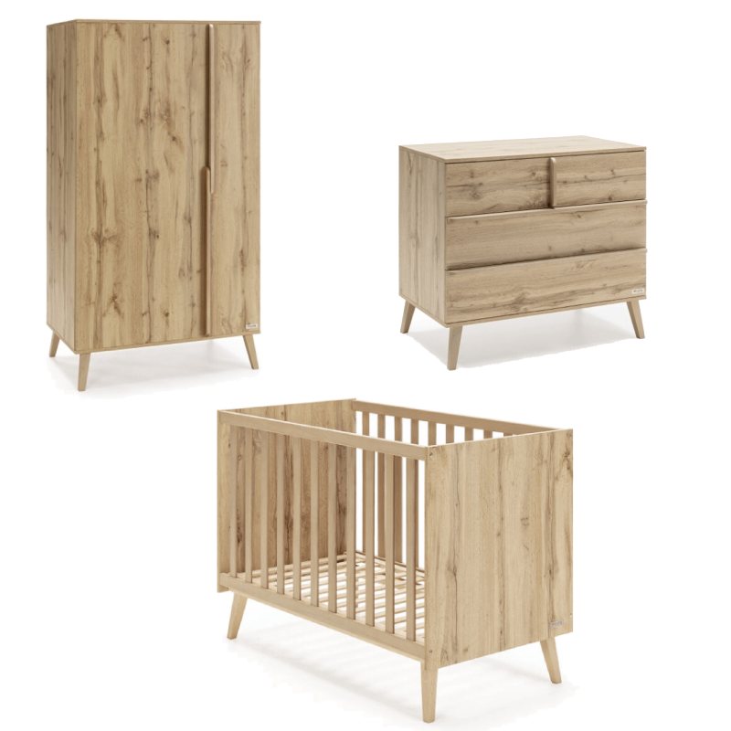 Cette chambre en bois Martha couleur chêne offrira tous les meubles nécessaire pour la chambre de bébé tout en apportant une touche d'élégance.