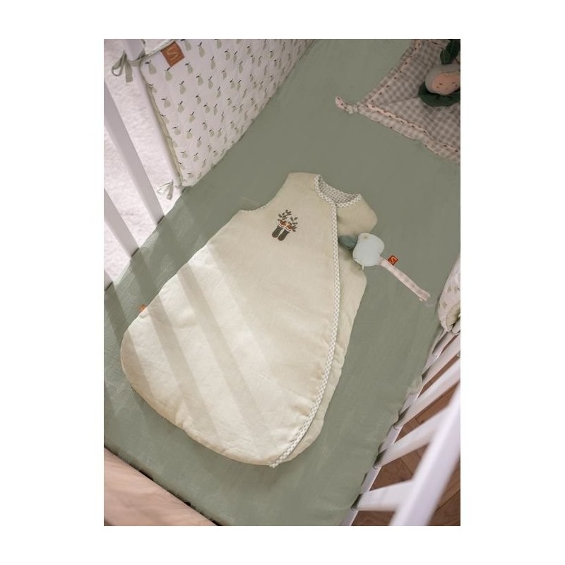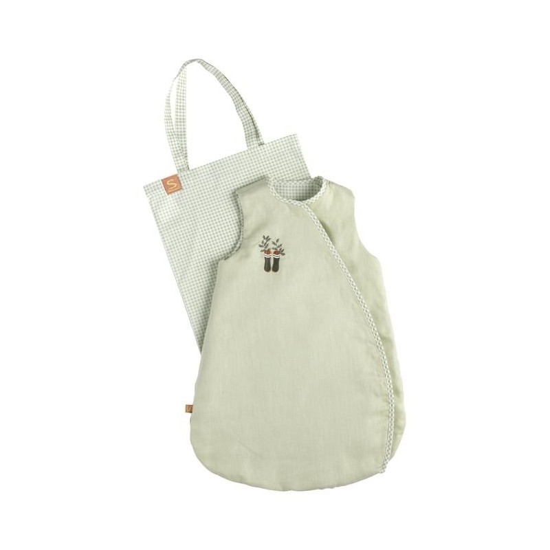La Gigoteuse naissance Verte Botanica de Sauthon se distingue par sa jolie couleur verte et ses délicates petites bottes brodées.