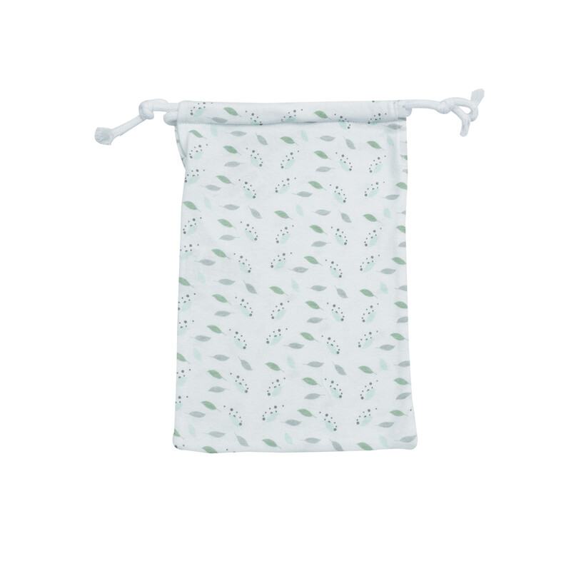 Présenté dans une élégante teinte pastel eucalyptus décorée de petites feuilles vertes, ce design rend votre enfant encore plus mignon. Disponible en deux tailles, dès la naissance suivant la taille de votre bout’chou. Un baluchon est inclus pour ranger et transporter facilement cet ensemble.