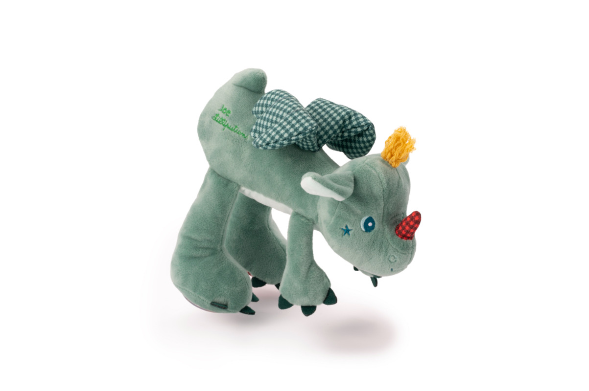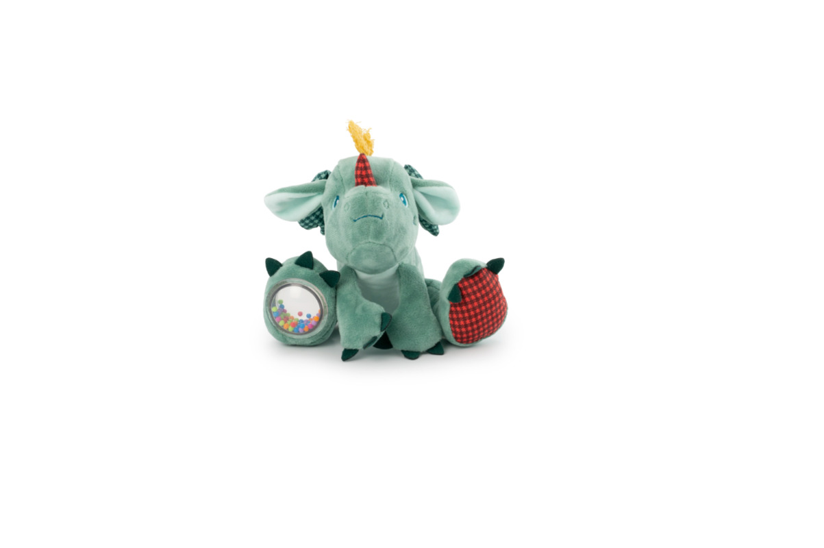 Joe le dragon est prêt à prendre son envol. Il suffit de presser ses petites fesses et hop, il déploie ses ailes. Rugissement de dragon, bruissement, hochet, ... ce petit dragon volant est un véritable festin pour les petites oreilles.