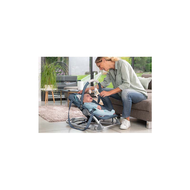 2 en 1, ce transat s'utilise en mode fixe mais également en mode balancelle multi-modulable pour permettre à votre fripouille de s'amuser.