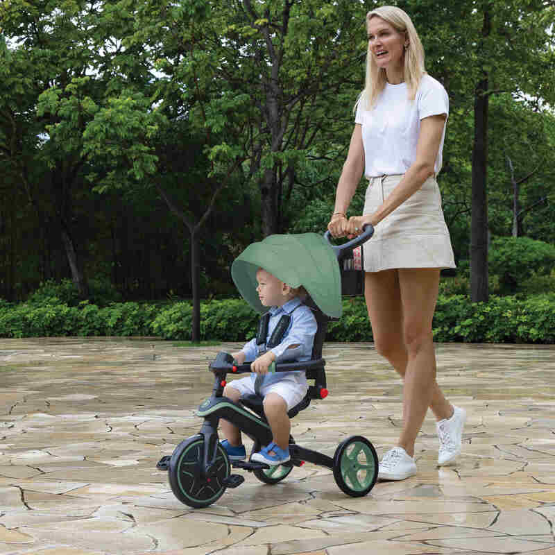 Le tricycle évolutif et pliable explorer 4-en-1 de Globber est prévu pour les enfants de 10 mois à 5 ans.